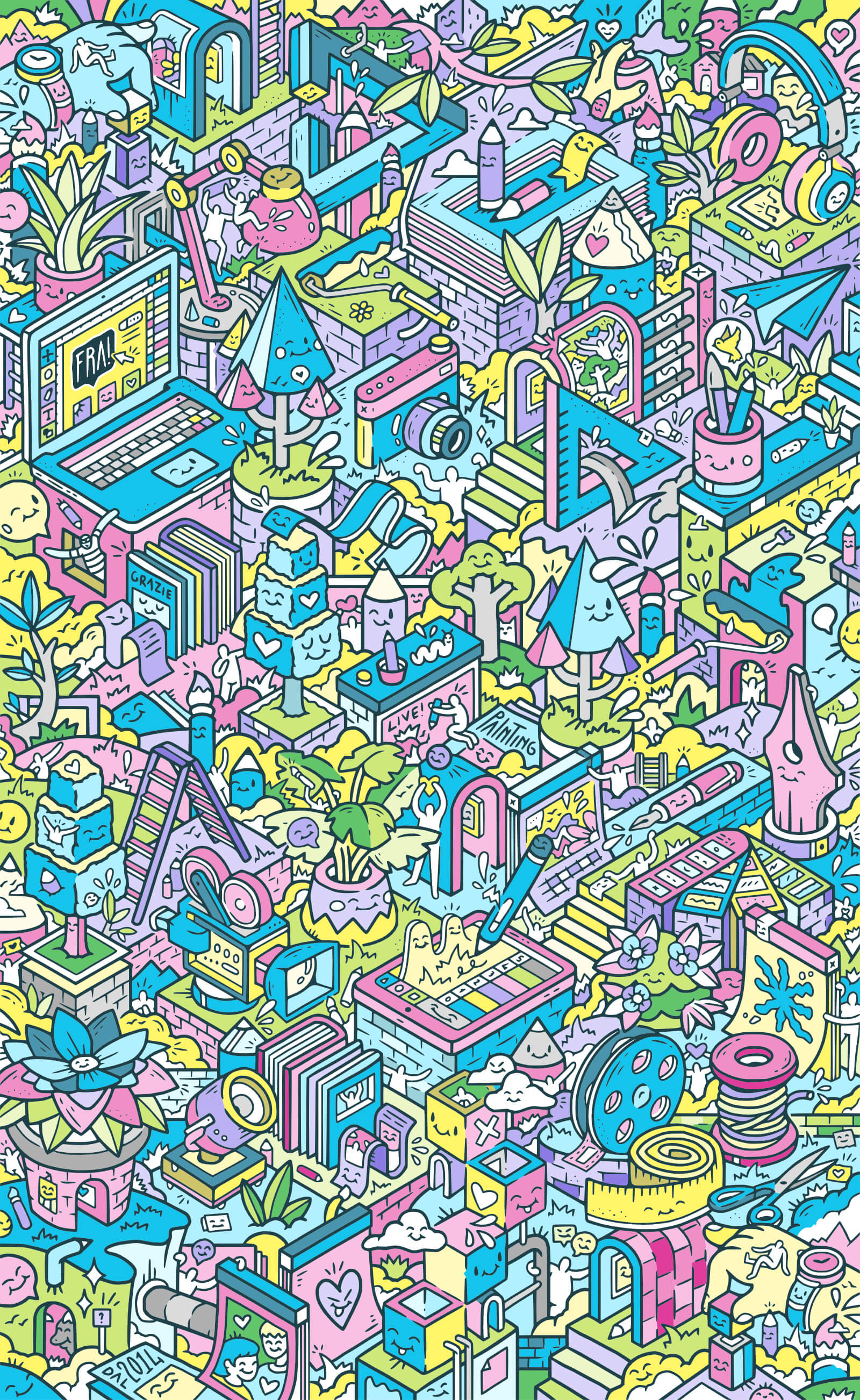 Francesco Caporale vive a Milano con il cuore Calabrese. Nel 2014, dopo la laurea in Graphic Design & Art Direction alla Naba, scopre la DoodleArt, da lui definita Arte dell’errore. Grazie agli studi di Branding nasce il progetto FRA!